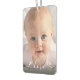“Love.” A fun, playful visual of white script handwriting and cute, playful hearts against the photos of your choice, helps your car smell as sweet as the loved ones in your photos. Spread love and joy whenever you drive around town with this stylish and modern, personalized car air freshener. Custom double-sided, so you can personalize with two different photos. Proudly display this in your car!