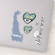 Une feuille de 3 modèles différents d'autocollants, avec carte Delaware et drapeau d'état. Chaque autocollant est découpé en dés et peut être enlevé séparément, de sorte que vous pouvez les coller sur différents articles. Design 1 : Coeur avec le drapeau de l'état et l'abréviation de l'état. Design 2 : Police par script avec drapeau d'état mélangé dans un coeur. Conception 3 : Plan d'état avec le texte 'appartenance ♥'. Si vous aimez l'état, ceux-ci sont parfaits pour montrer cet amour, en les collant sur votre voiture, ordinateur portable, téléphone, fenêtre ou toute autre surface lisse!