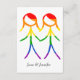 This enclosure card features a beautiful and simple design to include with your wedding invitations. The graphic at the top depicts two women, in the form of elegant stick figures, holding hands. The figures are coloured in a beautiful rainbow, symbolizing love and diversity. This card is a wonderful way to bring a cohesive and meaningful touch to your stationery while providing guests with important details like directions, accommodations, or registry information.