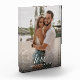 Sweet and simple wedding keepsake for Newlyweds, Valentine's Day, engagement, showcasing your favourite couple photo with modern script calligraphy reading LOVE over your custom text like names and / or date or a personal message over a dark gradient to make the typography stand out.