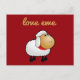 Send a postcard to a loved one and show them you care. This charming little sheep will spread love wherever he goes! The card features a really cute cartoon sheep on a red background with the words "love ewe" above. Makes a funny and whimsical card for Valentines Day or any other time you want to send something special to the one ewe love ~