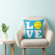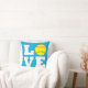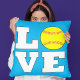 A super cute and customizable throw pillow for fastpitch softball players and fans, with LOVE printed in bold white text and a fastpitch softball graphic in place of the O. You can the leave the background colour as is, or click [Customize] and use the colour picker tool to select any background colour you want. Makes an awesome bedroom decoration for softball lovers!