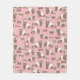 Hand-drawn ferrets, xoxo and hearts pattern fleece blanket, pink background.