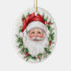 Any child would love this cute Holiday ornament with a personal message from Santa Claus! On the front is a classic portrait of the Jolly Old Elf in his traditional red and white hat. The portrait is framed within a holly and red berry wreath, and a gold confetti background adds a bit of sparkle. The back has a buffalo plaid "Merry Christmas", and three text fields for you to customize.