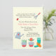 A delightful invitation for a lawn and garden shower. The cream background front features a hand rake, watering can, flower pots, garden boot and glove and a little ladybug which can be dragged to any location, made larger or smaller (+-) or eliminated. The back has an overall pattern of garden tools and flowers. The card is easy to customize with your wording, font, font colour, paper shape options and choice of six paper types.