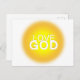 Love God, God is Love, Love Jesus round image postcard in a sunny yellow gold professional design.