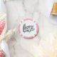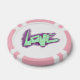 Love in a graffiti design with polka dots in green/mint and a purple cloud backdrop.