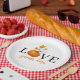 Celebrate the beauty of the harvest season with these charming paper plates featuring the phrase LOVE grows here with a pumpkin as the “O.” Perfect for Thanksgiving gatherings, autumn parties, fall weddings, or seasonal family dinners, these plates bring cozy farmhouse style to your table. Sturdy and decorative, they make cleanup easy while adding a festive seasonal touch to any occasion.