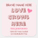 "A charming Valentine’s Day label design featuring the phrase “Love Grows Here” in bold, eye-catching lettering. The layout is simple, warm, and perfect for gifting. Personalize the label with your own text—such as a family name — to create a thoughtful, custom touch for candles, favors, or décor. Ideal for Valentine’s gifts, parties, or cozy home accents."