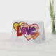 The word "Love" painted in red, pink, & purple against yellow, pink, and orange hearts. The hearts intersect and mix colours on overlap like the many aspects of love in our loves. This painting also comes in a version without glitter. Personalize this love word art greeting card with your own text and images using the "Customize It" button.