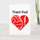 Netball thank you greeting card template with red love heart silhouette design. Custom personalized cards for netball player or fan.