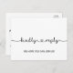 Cette demande de chansons de coeur d'amour RSVP carte postale est parfaite pour un mariage rustique. Le design minimaliste romantique présente une police de calligraphie cardiaque simple et douce. Créez votre liste d'invités mariages et votre liste de chansons de piste de danse tout à la fois ! Cette carte postale de réponse mariage demande si les invités pourront assister à votre mariage, et aussi quelle chanson les amènera à danser.