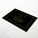 Welcome friends and family to take part in your wedding day celebrations with this modern wedding invitation. The horizontal layout provides extra space for long names. The Love Hearts foil design features a 'surrounded by love' themed tactile two-tone geometric pattern border with a generous display of gold hearts on a black background and elegant gold text.
