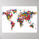 Map of the World made from overlapping colourful semi-transparent hearts, on a white background