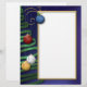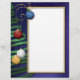 Greet your family and friends with a letter on this classy, elegant Christmas paper. The deep blue background with the ribbon tree, stars, and beautiful Christmas balls make for a lovely ornamented holiday greeting.