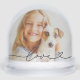 This sweet snow globe features your favorite photo with "Love" in delicate black script and a heart accent overlaid on the image. The back displays a second photo for a charming two-sided keepsake. Versatile enough for couples, families, pet lovers, or anyone who wants to showcase a cherished memory. All photos are fully customizable.
