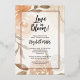 Love in Bloom! and your details on a collage of elegant peach, pale terracotta, and silver watercolor flowers and elegant brown leaves are framed with a rose gold foil border. These bridal shower invitations are perfect for your special day. MATCHING items in our collection.