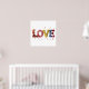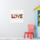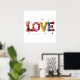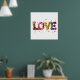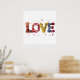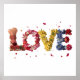 Colourful flowers arranged to spell out the word "LOVE" create a vibrant and eye-catching design. The dark background contrasts with the vivid colours of the flowers, highlighting their beauty and form.