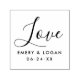 Stamper features "Love" in hand lettered script writing with a simple and modern custom monogram of the bride & groom's names and wedding date.