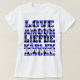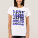 Do you like love theme tshirts? This shirt says love in English, French, Italian, Dutch and Swedish with hearts in various shades of blue.