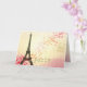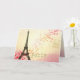 Eiffel Tower against a yellow, tan and pink background with floating hearts and "paris" in gold font. Easily add your own text to this design to customize it. Perfect for the Paris, France travellers, wedding or other special occasion.