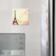 Eiffel Tower against a yellow, tan and pink background with floating hearts and "paris" in gold font. Easily add your own text to this design to customize it. Perfect for the Paris, France travellers, wedding or other special occasion.
