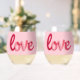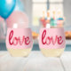 Celebrate romance with the Love in Pink Stemless Wine Glass – an elegant and charming glass perfect for toasting special moments in style!