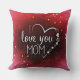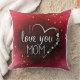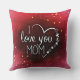 A heartfelt pillow design with a bold red background and a sweet message "I love you mom", perfect for showing appreciation and love to the special mom in your life.