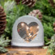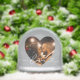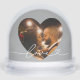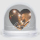 This elegant snow globe features your favorite couple's photo framed inside a silver heart cutout with "Love" in graceful white script. The back displays a second photo for a sophisticated two-sided keepsake. A refined Valentine's Day gift, wedding anniversary memento, or stylish romantic keepsake with a cool metallic shimmer. All text and photos are fully customizable.