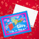 This charming folk art Angel flies through the sky filled with hearts. Love is in the Air is the greeting on the front. Texts can be changed to a personal message of your choosing. This original artwork design filled with happy colours would be so cute for a girl of any age to receive.