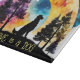 Watercolor Retriever Dog waiting: Silhouette against Full moon, Colourful with clouds and trees,
