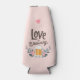 Keep the brews cold and the party hot with this charming beer bottle cooler! Adorned with an illustration of a beer glass, lush foliage, and the romantic message 'love is brewing' on a pretty pink background, this cooler adds a touch of girly flair to your bachelorette celebration. Customize the back with the bride-to-be's name and party date for a personal touch that's as cool as the drinks inside!