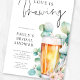 Love is Brewing Beer and Eucalyptus Bridal Shower Available digitally and printed. The word Brewing is in a modern non-editable script. The rest of the text you can easily personalise. With a watercolor beer and euclyptus leaves illustration.