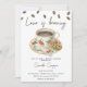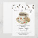 Watercolor coffee beans and elegant flowers vintage coffee cup with spoon and cookie. Love is brewing bridal shower. Coffee themed bridal shower. Vintage coffee cup with the image of flowers.
