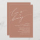 Announce your happily ever after in style with our modern contemporary rustic terracotta earthy brown theme design (Love is brewing) bridal shower celebration invitation card. With its sophisticated yet playful design, this invitation is sure to set the tone for an unforgettable event. The invitation card features modern minimalist script design, adding a touch of timeless elegance to your celebration. Designed by TeeshaDerrick