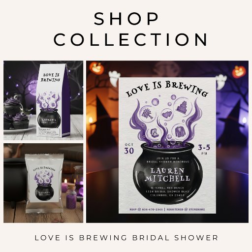 Stir up some love this fall with this witchy "Love is Brewing" Halloween bridal shower paper cup. Featuring a magical witch's cauldron bubbling over with wedding items, this cup is perfect for brides-to-be who love a spooky twist. It's purple, black and white colour scheme is perfect for gothic event.. Personalize it to make your celebration uniquely yours.