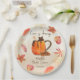 Love is brewing fall bridal shower monogrammed customized printed paper plates personalized table decor pumpkin and spice coffee cup maple leaves fall bridal shower plates