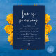 Announce your happily ever after in style with our modern elegance aesthetic navy blue theme design (Love is brewing) bridal shower beer party celebration invitation card. With its sophisticated yet playful design, this invitation is sure to set the tone for an unforgettable event. The invitation card features modern minimalist script design, adding a touch of timeless elegance to your celebration. Designed by TeeshaDerrick