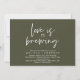Announce your happily ever after in style with our modern elegance aesthetic olive green theme design (Love is brewing) bridal shower beer party celebration invitation card. With its sophisticated yet playful design, this invitation is sure to set the tone for an unforgettable event. The invitation card features modern minimalist script design, adding a touch of timeless elegance to your celebration. Designed by TeeshaDerrick