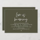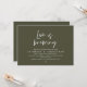 Announce your happily ever after in style with our modern theme design (Love is brewing) wedding rehearsal party celebration invitation card. It is ideal for couples who have decided to celebrate the night before their big day. With its sophisticated yet playful design, this invitation is sure to set the tone for an unforgettable event. The invitation card features timeless olive green design, adding a touch of timeless elegance to your celebration. Designed by TeeshaDerrick