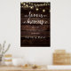 Love is Brewing, Modern Rustic, Wedding Rehearsal Dinner Welcome Poster, in rustic brown wooden background, cottage string lights themed.