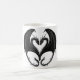 Embrace the power and elegance of our Dragon Heart Mug. This striking piece features two intricately designed black dragons, facing each other in a perfect mirror image. With their detailed scales, sharp claws, and large wings forming a heart shape, these majestic creatures create a captivating symmetrical design. Their heads, adorned with fierce red eyes and menacing expressions, meet at the centre, symbolizing unity and strength. The intertwined tails at the bottom add to the balance and harmony of the artwork. This mug is perfect for dragon lovers and fantasy enthusiasts, adding a touch of mythical charm to your daily coffee or tea ritual. Whether as a unique gift for a loved one or a special treat for yourself, let this fierce and enchanting design become a part of your collection.