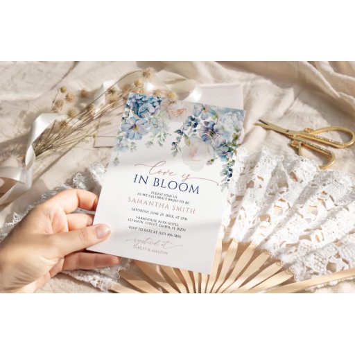 Love is in Bloom Blue Hydrangea Bridal Shower Invitation