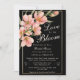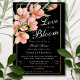 Love is in Bloom Pink Cherry Blossom on Black Bridal Shower Invitation - A beautiful, unique, elegant and modern bridal shower invitation. Featuring a bouquet of pink cherry blossom branches against a sleek, black background with a faux gold frame. A combination of script calligraphy and elegant block font, this chic bridal shower invitation exudes sophistication, and timeless elegance. Set the tone for an unforgettable time with friends and family showering the bride-to-be. Edit this bridal shower invitation template with your own event details. Make it easy for your guests to view your wedding registry by adding the QR Code in the back. Also available as an instant digital download, perfect for sending via email, text or social media.