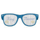 Design features images of wedding rings at corners of left and right lenses. The words, "Ring Bearer" are displayed across both lenses. One word per lens. Text is in a blue font. All text is customizable. Designed to coordinate with the "Love is in Bloom Wedding Suite."