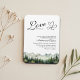 An elegant Wedding Invitation magnet with watercolor mountains and pine trees that you can customize with your details.