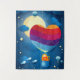 Fantasy landscape with balloon heart shaped and cat, valentine card.
