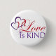 A beautiful Love is Kind button to pin to your shirt, jacket hat, tote bag and more.