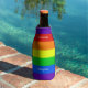 Cute Gay Pride rainbow striped bottle coolers that reads Love is Love. Fun LGBTQ party gear with your own custom text.