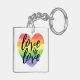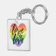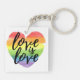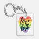 This design features Love is Love lettering on watercolor rainbow spectrum heart shape.
